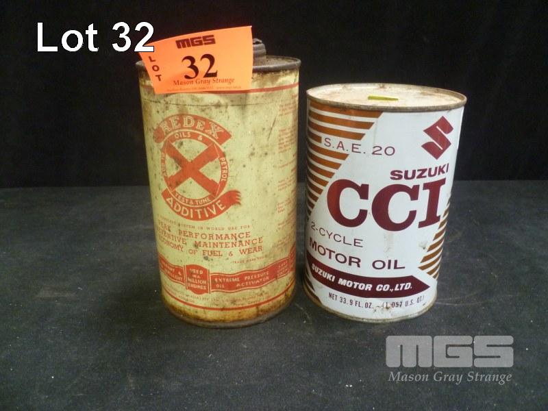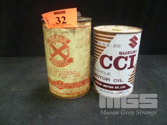 REDEX ADDITIVE TIN, 1 IMP QUART & SUZUKI CCI 2 CYCLE MOTOR OIL TIN, NET 33.9FL oz, (SEALED WITH CONTENTS)