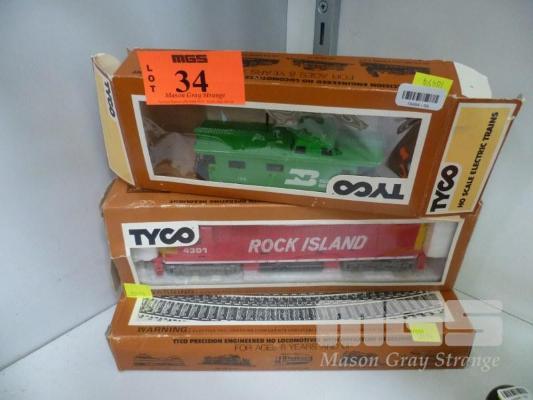 TYCO HO SCALE ROCK ISLAND LOCOMOTIVE, TYCO CARRIAGE & TRAIN TRACKS