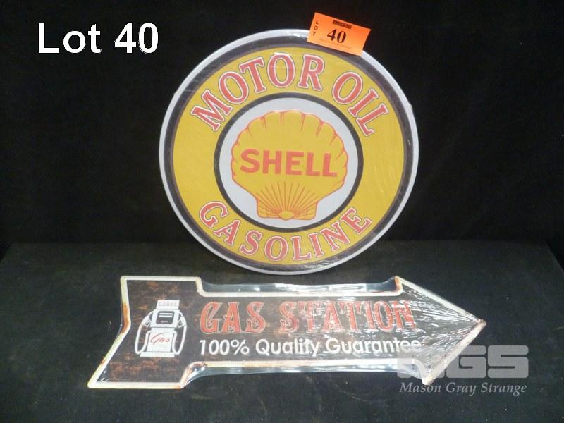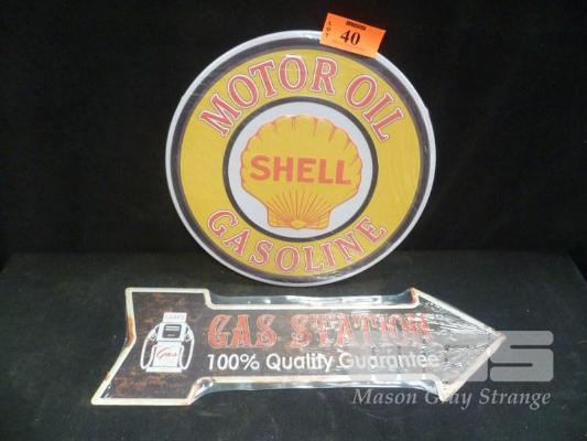 2 X RE-MADE SCREEN PRINT TIN SIGNS, SHELL & GAS STATION