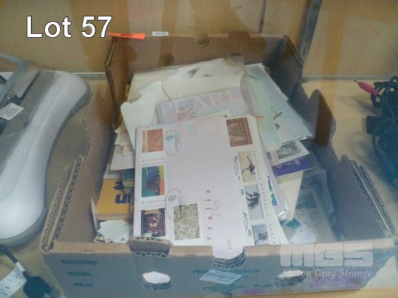 BOX OF MIXED STAMPS MOSTLY AUSTRALIAN, ALBUMS, 1ST DAY ISSUES, LOOSE STAMPS