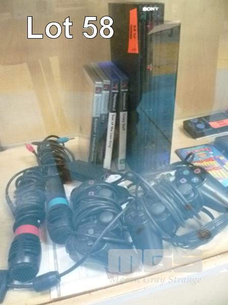 SONY PLAYSTATION 2 CONSOLE WITH 2 x CONTROLS, SINGSTAR MICROPHONES, GAMES & ACCESSORIES