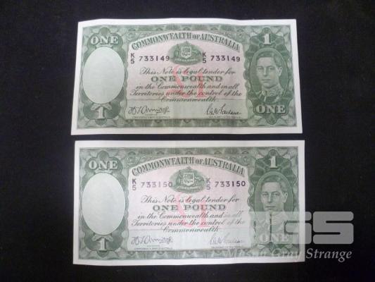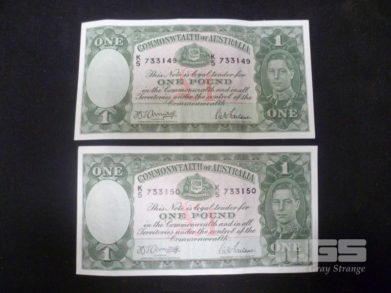 1942 2 X 1 POUND NOTE CONSECUTIVE ARMITAGE MCFARLANE HIGH GRADE