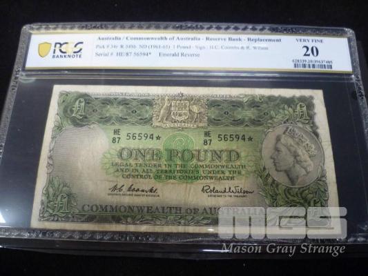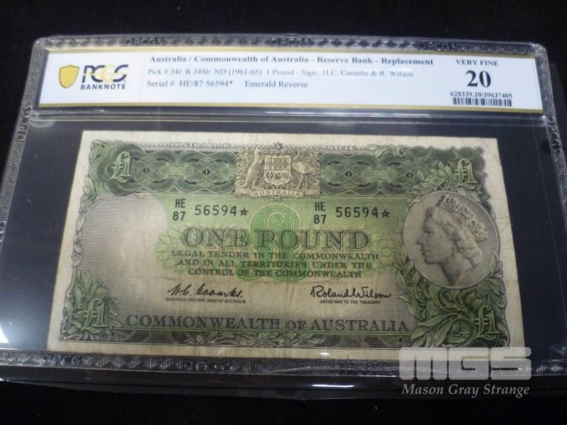 1960 1 POUND STAR NOTE COOMBS WILSON GRADED VF20 RARE HIGH GRADE
