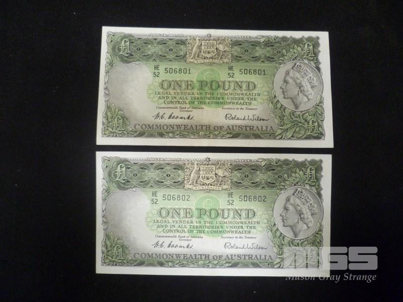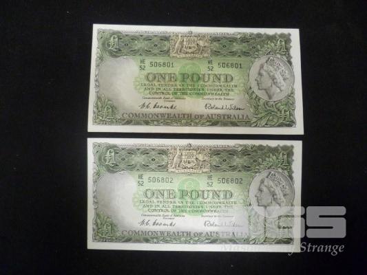 1954 2 X 1 POUND NOTE CONSECUTIVE COOMBS WILSON HIGH GRADE