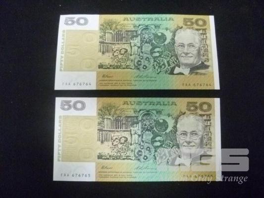 1993 2 X 50 DOLLAR 1ST PREFIXS "FAA" NOTE CONSECUTIVE FRAZER EVANS
