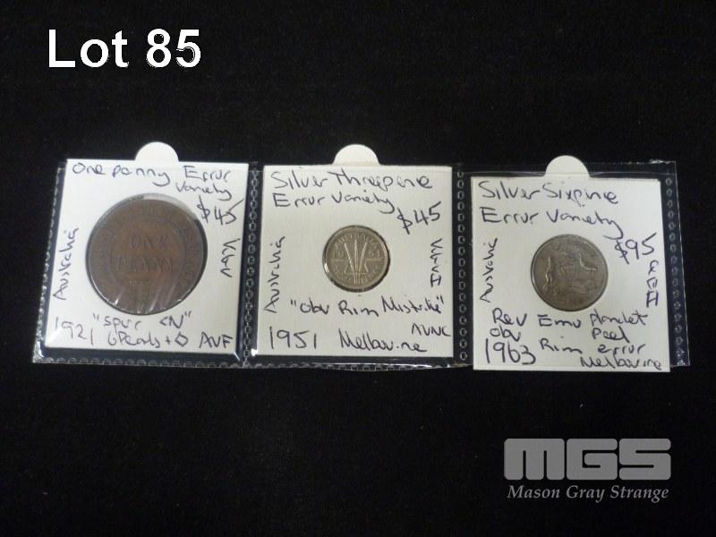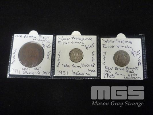 AUSTRALIAN ERROR COINS 1921 PENNY, 1951 3PENCE, 1963 6PENCE