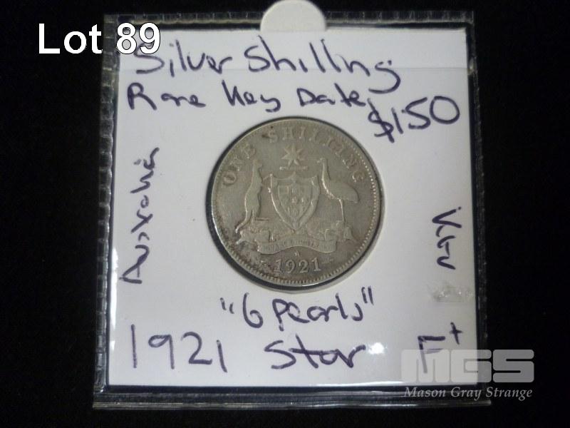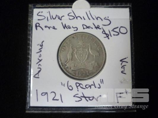 1921 STAR SILVER SHILLING RARE KEY DARE 6 PEARLS.