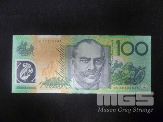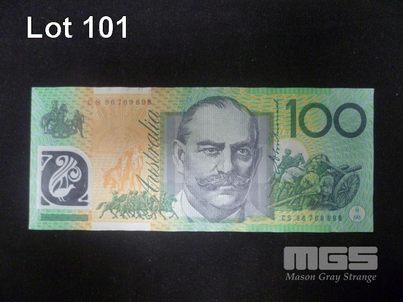 AUSTRALIA, $100 POLYMER, LAST TEST BANKNOTE, EVANS/FRASER, CS 96769698 (CIRCULATED)