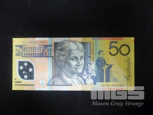 AUSTRALIA, $50 POLYMER BANKNOTE, LAST SIGNITURE PREFIX, EVANS/FRASER, DA 96400950 (CIRCULATED)
