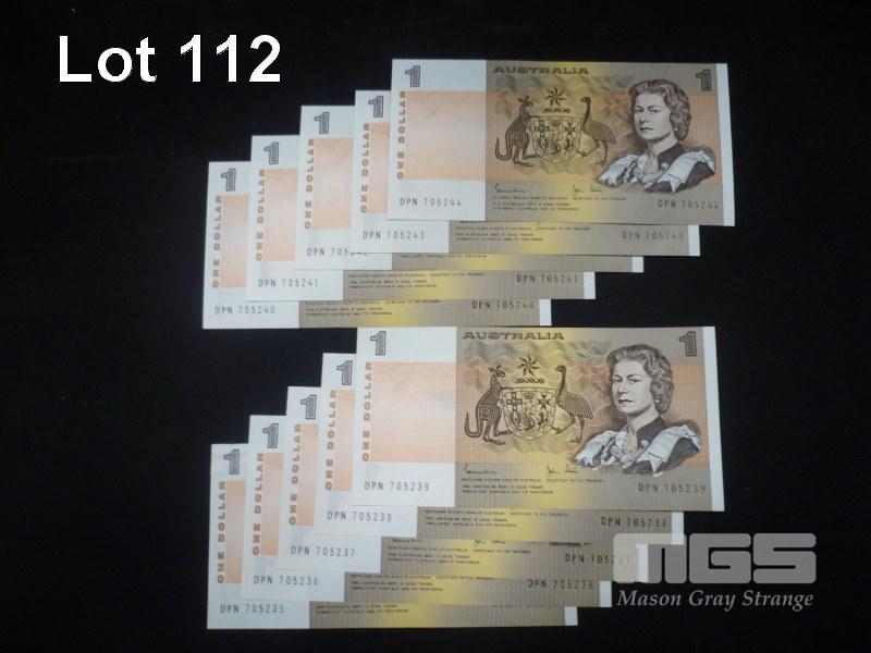 1982 10 X 1 DOLLAR CONSECUTIVE NOTES JOHNSTON STONE