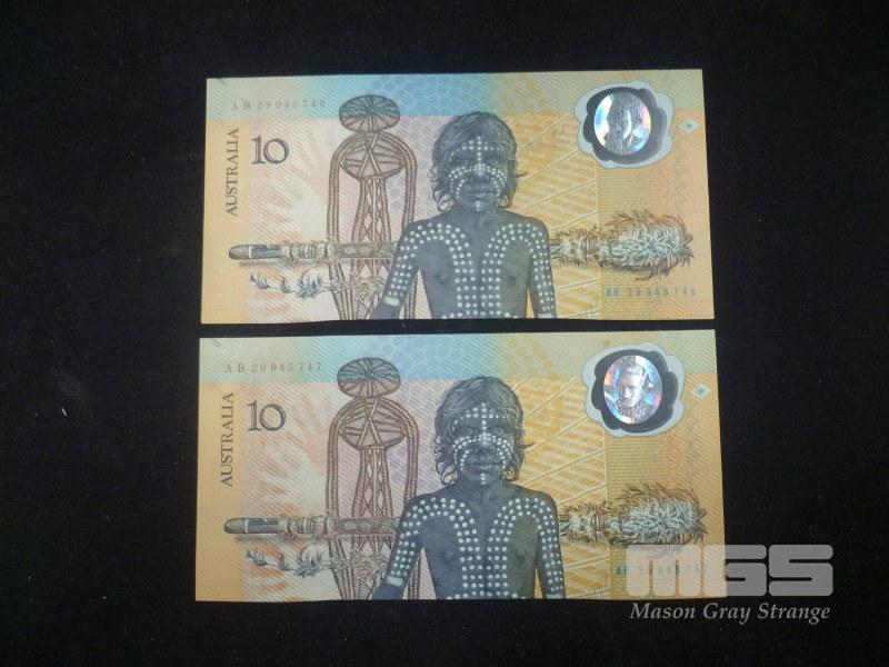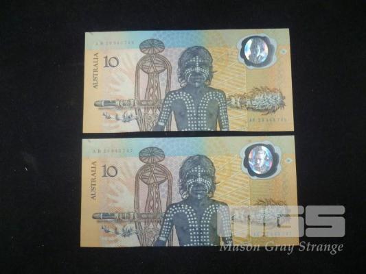 1988 COMMEMORATIVE 2 X 10 DOLLAR CONSECUTIVE 1ST RELEASE NOTES UNC