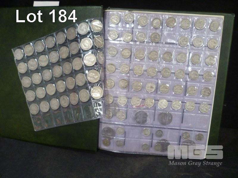 PORT PHILLIP COIN ALBUM CONTAINING AUSTRALIA PRE-DECIMAL COINS, 12 X THREEPENCE 50 X SIXPENCE 40 X SHILLINGS 6 X FLORINS