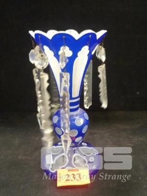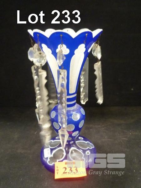 EARLY LUSTRE VASE, BLUE/WHITE, SOME DROP CRYSTAL DAMAGE, SOME MISSING