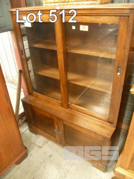 ENCLOSED TIMBER BOOKCASE WITH 2 DOOR UNDERSTORAGE SLIDING GLASS DOORS