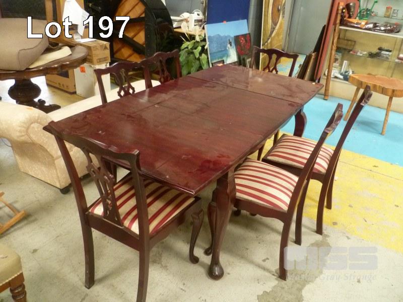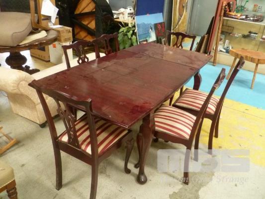 ROSEWOOD STAIN, 7 PIECE DINING SUITE, INCLUDING RECTANGULAR EXTENSION TABLE, SINGLE LEAF, CABRIOLE LEGS & 6 x DINING CHAIR, BEIGE/BURGUNDY FABRIC