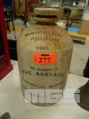 STONEWARE JUG, "THE ADELAIDE CHEMICAL WORKS COMPANY", GALL, MURIATIC ACID