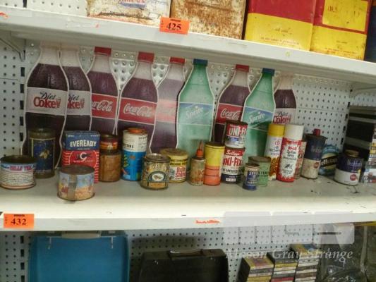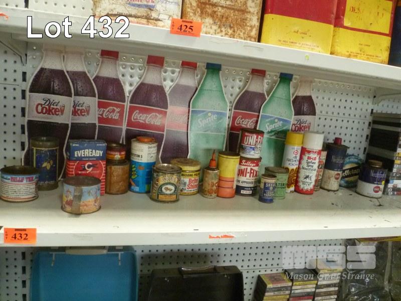 VINTAGE HOUSEHOLD TINS & COKE SIGNS, 1 x SHELF