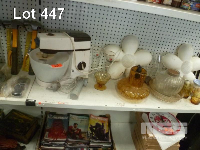 KENWOOD CHEF MIXER, RETRO YELLOW LIGHT, ASSORTED GLASSWARE & LIGHT UP PLASTIC FLOWER