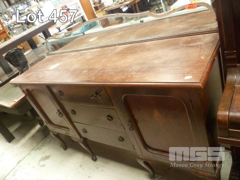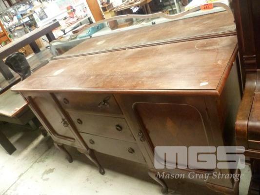 ART DECO TIMBER SIDEBOARD, MIRROR BACK, CABRIOLE LEGS, STAINED ON TOP