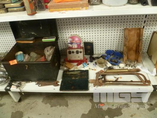 ASSORTED VINTAGE TOOLS, TOOL BOX, SAW,S DRAFT KIT, ETC
