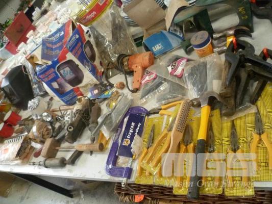 ASSORTED TOOLS INC WELDING MASK, CLAMPS, POWER TOOLS, WELDING RODS, PLIERS, ETC