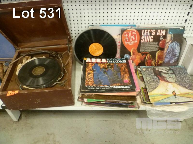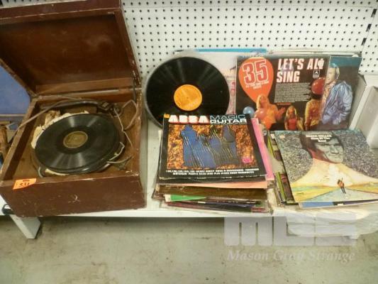 VINTAGE CARRARD RECORD PLAYER & ASSORTED BOOKS