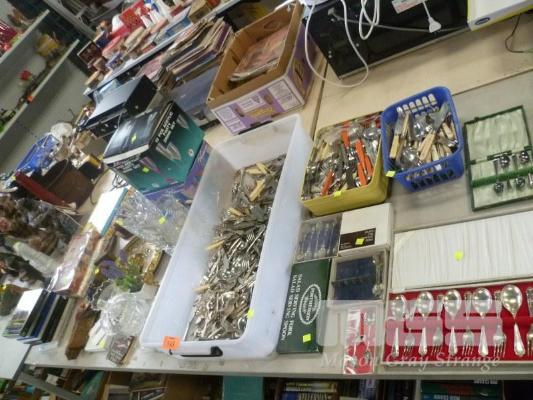 ASSORTED CUTLERY, GLASSWARE, CRYSTAL WARE AND HOMEWARES