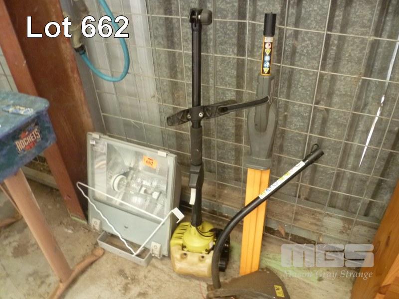 SBP INDUSTRIAL LIGHT FITTINGS, HALOGEN, RYOBI PETROL LINE TRIMMER WITH RYOBI HEDGE ATTACHMENT