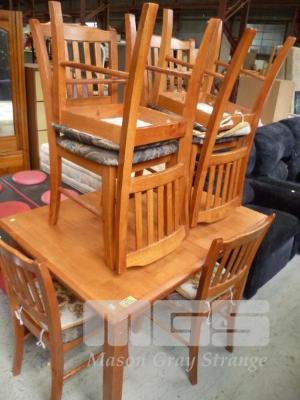 EXPANDABLE SOLID TIMBER DINING ROOM TABLE & 6 x DINING CHAIRS