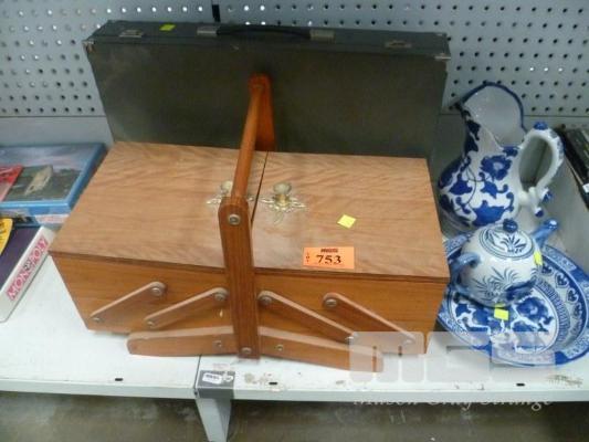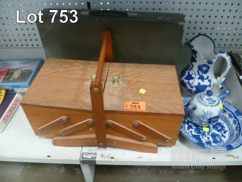 EXPANDABLE SEWING BOX, JEWELLERY CASE, ORIENTAL JUG, BOWL & TEA POT