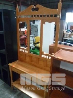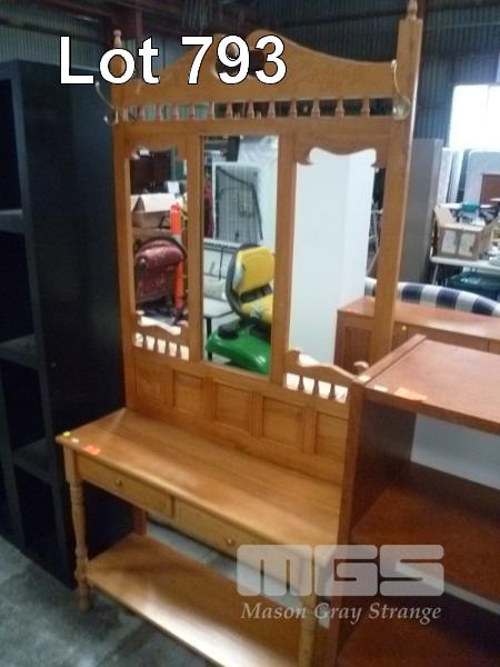 PINE HALL STAND, 2 x DRAWER, CENTRE MIRROR