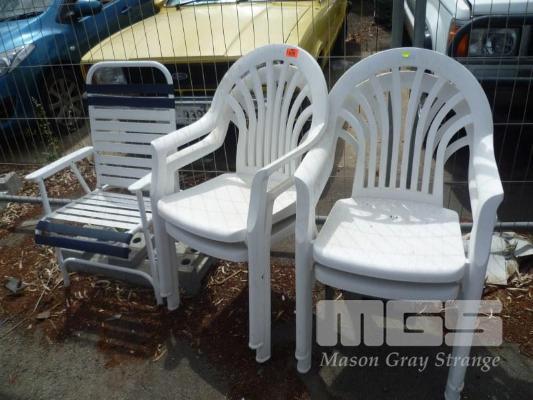 SET 4 PLASTIC STACKABLE CHAIRS & FOLD UP CHAIR