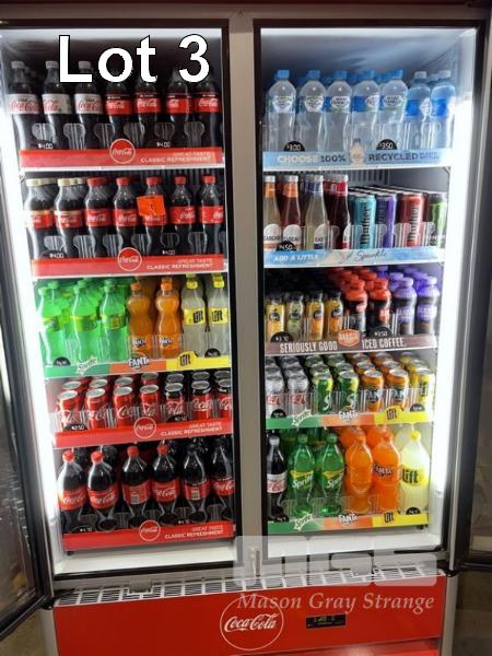 ASSORTED SOFT DRINKS, COMPRISING 350 (APPROX) x ASSORTED BOTTLES & CANS, INCLUDING 1.25 LITRE, COKE, FANTA, SPRITE & LIFT, 600ml COKE, FANTA, LIFT & SPRITE, WATER, MOTHER, CASCADE, ETC (CONTENTS 2 DOOR FRIDGE)