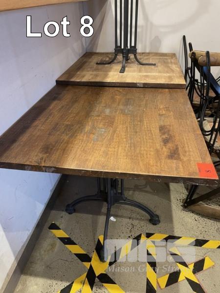3 x RUSTIC DINING TABLES, 80 x 80cm, TIMBER TOPPED, CAST IRON BASE