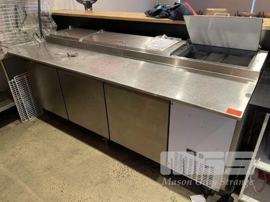 PIZZA PREP FRIDGE, FED MOD: TPP93 3 DOOR, STAINLESS STEEL, 240cm, 3 x OPENINGS R134A REFRIGERANT SELF CONTAINED