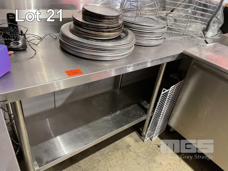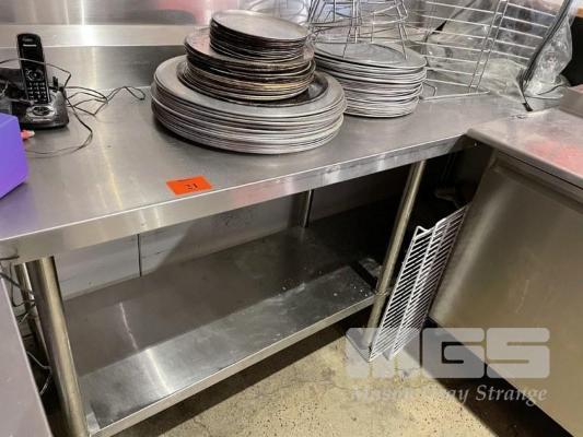 STAINLESS STEEL PREP BENCH, 2 TIER WITH SPLASHBACK 210 x 60cm