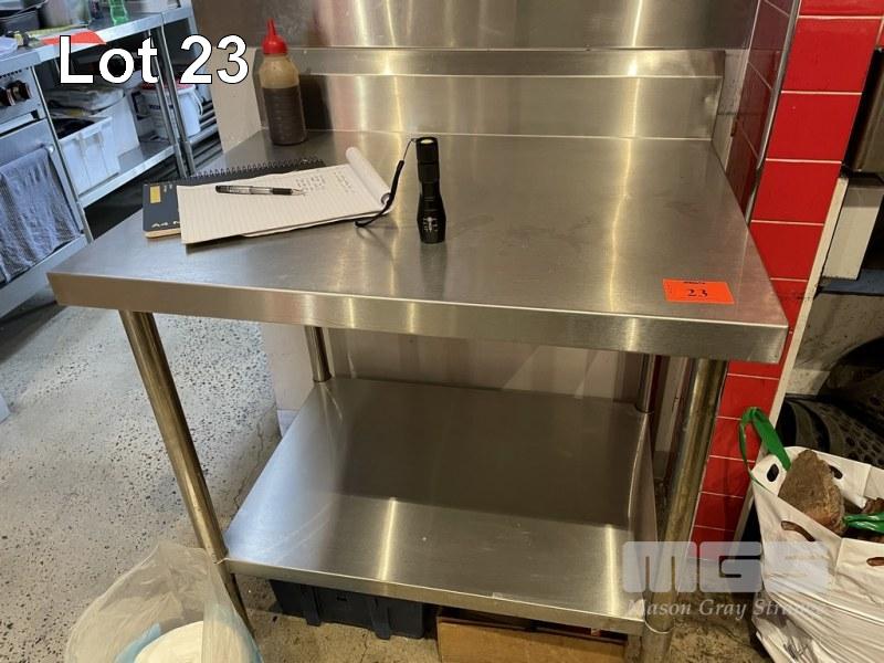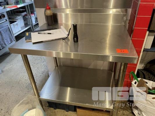 STAINLESS STEEL PREP BENCH, 2 TIER WITH SPLASHBACK