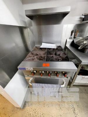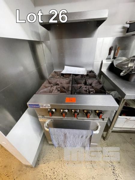 OVEN RANGE, GAS MAX BY FED MOD: S24 (T) 4 BURNER STOVE, SINGLE DOOR OVEN, STAINLESS STEEL CASED, LPG GAS FIRED