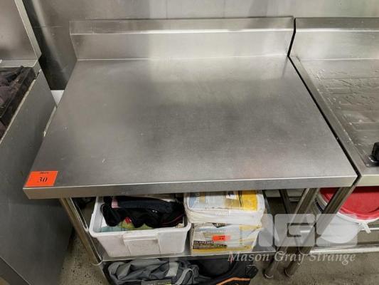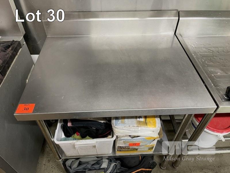 STAINLESS STEEL PREP BENCH, 2 TIER WITH SPLASHBACK 90 x 70cm