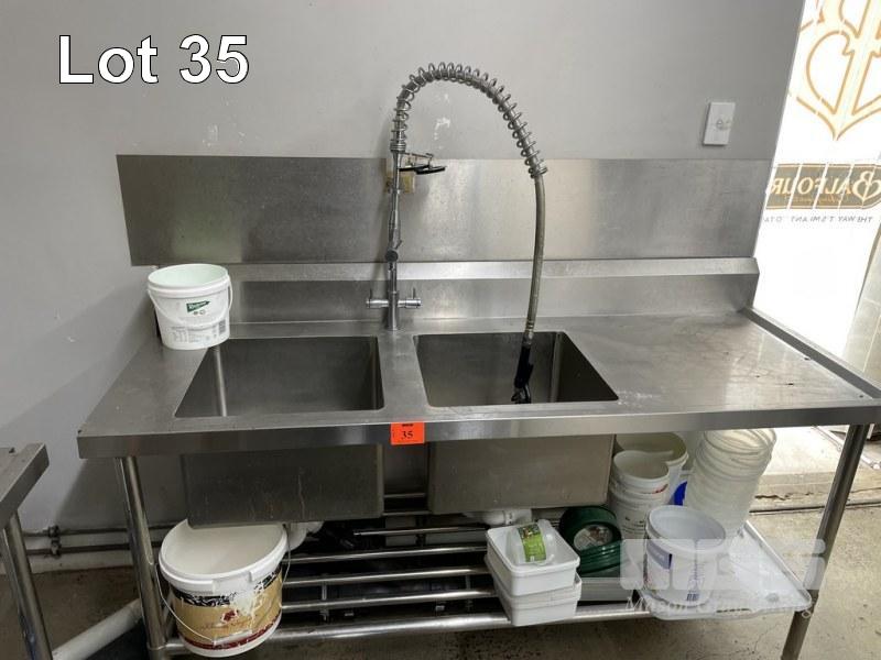 TWIN BOWL STAINLESS STEEL SINK, 2 TIER WITH SPLASHBACK, 180 x 70cm & MIXER TAP