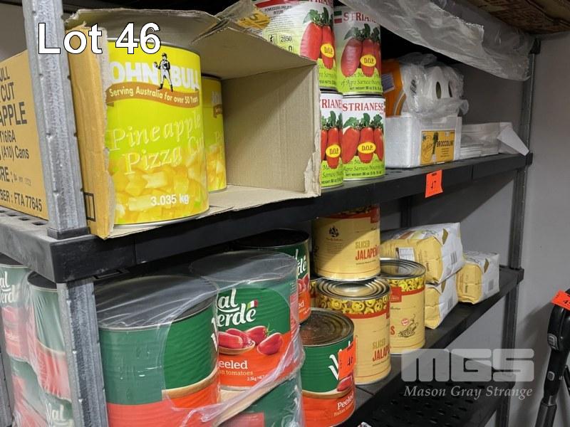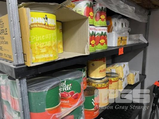 ASSORTED FOOD STUFFS, 29 x 3kg CANS, JALAPENOS, PEELED TOMATOES, PINEAPPLE PIECES PIZZAS & 3 x SEMOLA