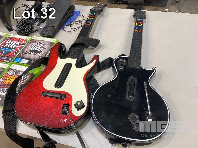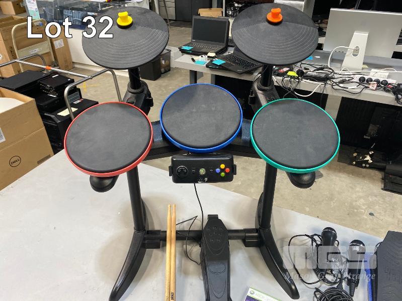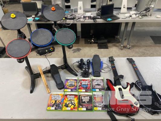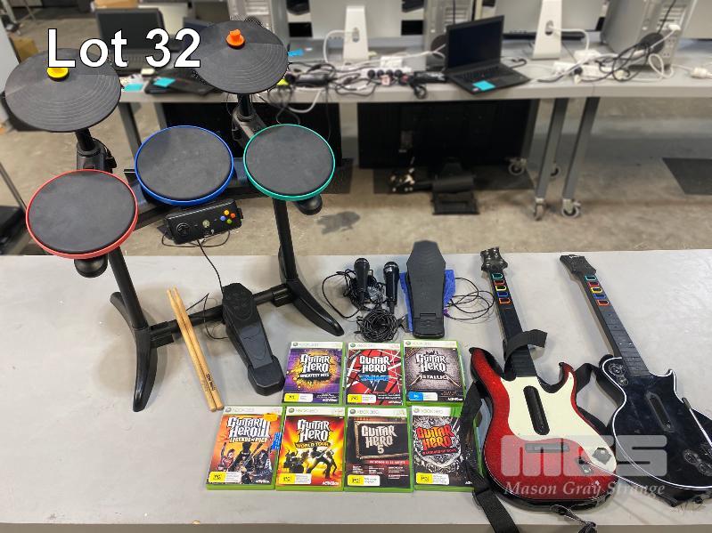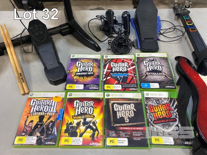 MICROSOFT XBOX 360 GUITAR HERO DRUM KIT WITH STICKS & PEDALS, 2 x GUITARS, 2 x USB MICRPPHONES, 7 x GUITAR HERO GAMES