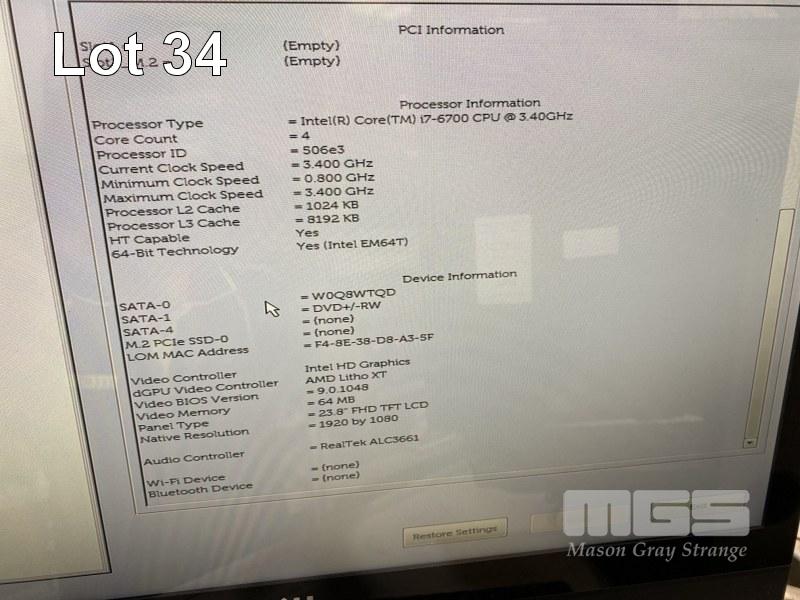 ALL-IN-ONE PC, DELL OPTIPLEX 7440, CORE i7 6700 (6TH GEN) @ 3.4GHz, 8GB DDR4 RAM, 320GB SATA HDD, DVD-RW, INBUILT 23.8" FHD TOUCHSCREEN (1920x1080), INTEL HD VIDEO, 2GB AMD RADEON R7 A370 VIDEO, WEBCAM, 8 x USB, WINDOWS 10 HOME INSTALLED, KEYBOARD & MOUSE (NOTE: MESSAGE ON STARTUP "dGPU FAN FAILURE") S/N:9kr1lg2