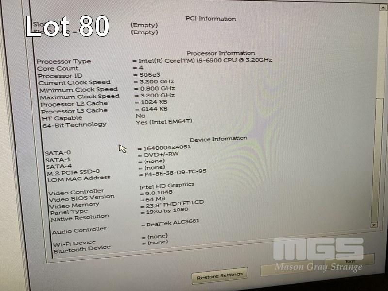 ALL-IN-ONE PC, DELL OPTIPLEX 7440, CORE i5 6500 (6TH GEN) @ 3.2GHz, 8GB DDR4 RAM, 256GB SSD, DVD-RW, INBUILT 23.8" FHD WIDESCREEN (1920x1080), INTEL HD VIDEO, WEBCAM, 8 x USB, WINDOWS 10 HOME INSTALLED, KEYBOARD & MOUSE S/N:9KLYKG2
