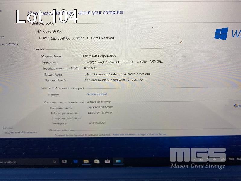 TABLET PC, MICROSOFT SURFACE PRO 4, MODEL 1724, CORE i5 6300U (6TH GEN) @ 2.4GHz, 8GB RAM, 256GB SSD, 12.3" TOUCHSCREEN, Wi-Fi, WINDOWS 10 PRO INSTALLED, KEYBOARD TYPE COVER, SURFACE DOCK (1661) WITH DOCK POWER SUPPLY (1749) S/N:091613154953