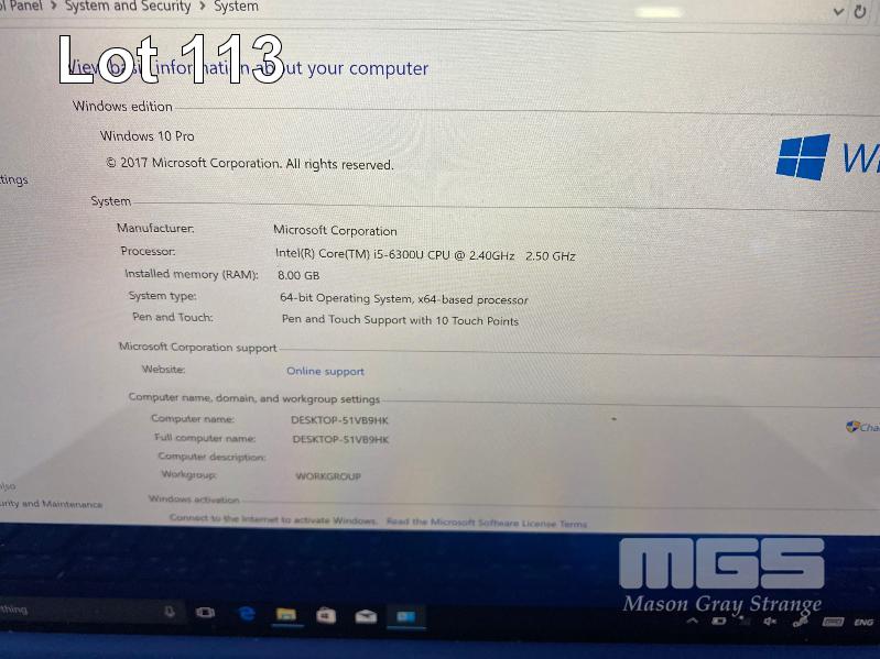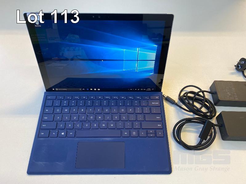 TABLET PC, MICROSOFT SURFACE PRO 4, MODEL 1724, CORE i5 6300U (6TH GEN) @ 2.4GHz, 8GB RAM, 256GB SSD, 12.3" TOUCHSCREEN, Wi-Fi, WINDOWS 10 PRO INSTALLED, KEYBOARD TYPE COVER, SURFACE DOCK (1661) WITH DOCK POWER SUPPLY (1749) S/N:030612270153
