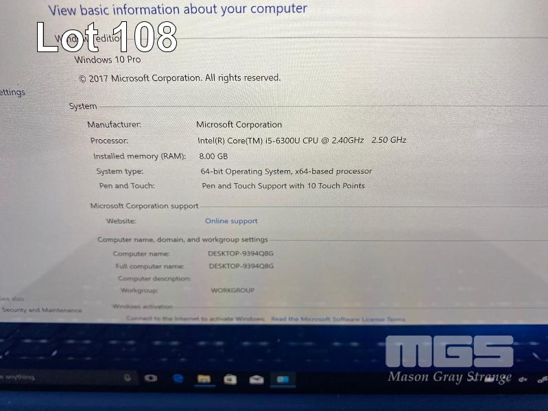 TABLET PC, MICROSOFT SURFACE PRO 4, MODEL 1724, CORE i5 6300U (6TH GEN) @ 2.4GHz, 8GB RAM, 256GB SSD, 12.3" TOUCHSCREEN, Wi-Fi, WINDOWS 10 PRO INSTALLED, KEYBOARD TYPE COVER, SURFACE DOCK (1661) WITH DOCK POWER SUPPLY (1749) S/N:021306271453