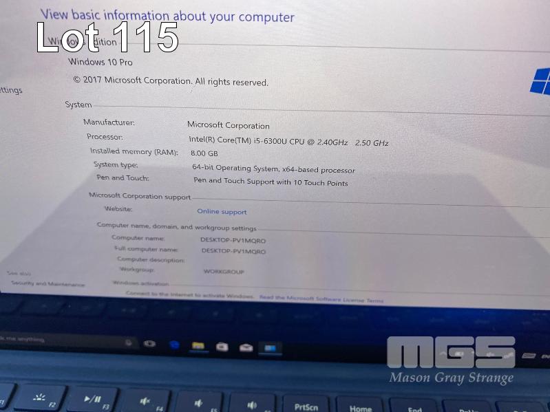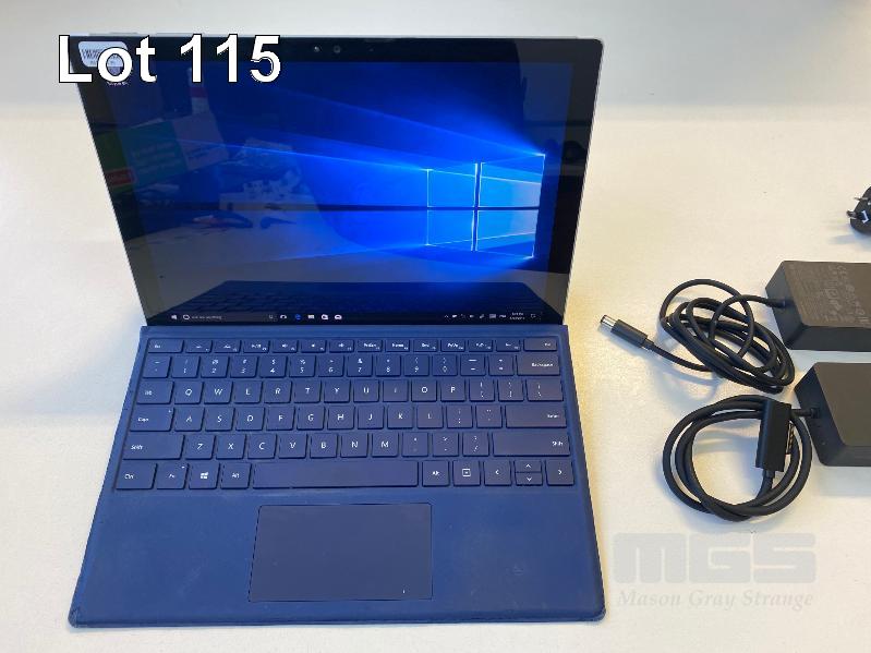 TABLET PC, MICROSOFT SURFACE PRO 4, MODEL 1724, CORE i5 6300U (6TH GEN) @ 2.4GHz, 8GB RAM, 256GB SSD, 12.3" TOUCHSCREEN, Wi-Fi, WINDOWS 10 PRO INSTALLED, KEYBOARD TYPE COVER, SURFACE DOCK (1661) WITH DOCK POWER SUPPLY (1749) S/N:090529354953