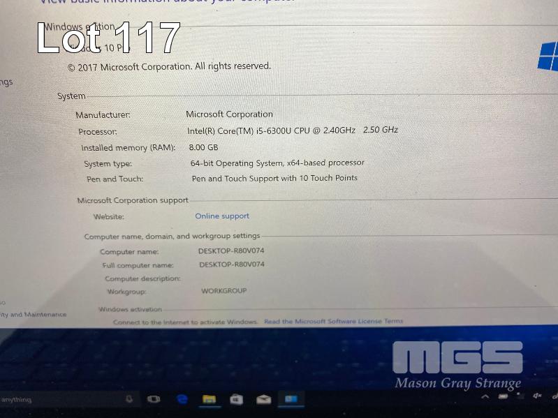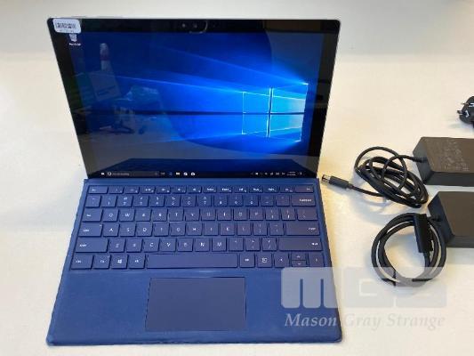 TABLET PC, MICROSOFT SURFACE PRO 4, MODEL 1724, CORE i5 6300U (6TH GEN) @ 2.4GHz, 8GB RAM, 256GB SSD, 12.3" TOUCHSCREEN, Wi-Fi, WINDOWS 10 PRO INSTALLED, KEYBOARD TYPE COVER, SURFACE DOCK (1661) WITH DOCK POWER SUPPLY (1749) S/N:045759555153