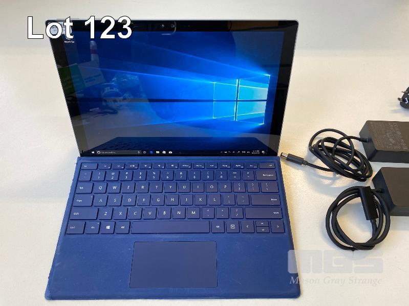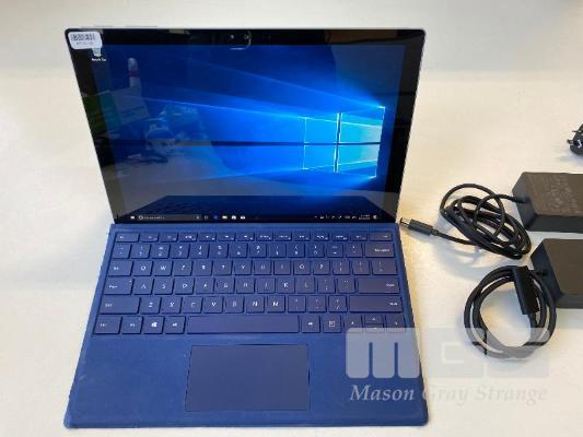 TABLET PC, MICROSOFT SURFACE PRO 4, MODEL 1724, CORE i5 6300U (6TH GEN) @ 2.4GHz, 8GB RAM, 256GB SSD, 12.3" TOUCHSCREEN, Wi-Fi, WINDOWS 10 PRO INSTALLED, KEYBOARD TYPE COVER, SURFACE DOCK (1661) WITH DOCK POWER SUPPLY (1749) S/N:029033465153